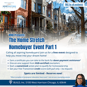 The Money Matters Institute Home Stretch: Homebuyer Event Part 1 at BUILD Chicago 📅 Date: Saturday, February 21, 2026 🕓 Time: 8:30 AM – 3:00 PM 📍 Location: BUILD Chicago – 5100 W Harrison St, Chicago, IL 60644 Have you started the process to secure your home? Join this two-part Home Stretch series hosted by […]